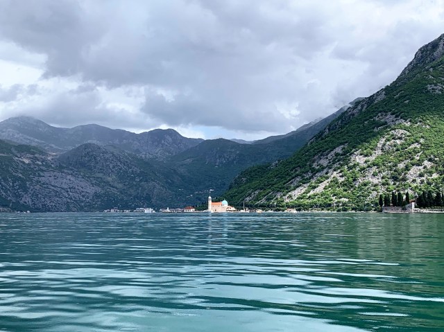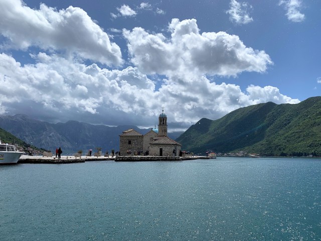 Apparently they say, if you don’t visit the Our Lady of the Rocks, you have not visited Montenegro, so we caught a small boat from the restaurant out to the island in what was very changeable weather – one minute it was sunny and hot, then it clouded over and was cool, then it would rain, then it would repeat that cycle all over again.