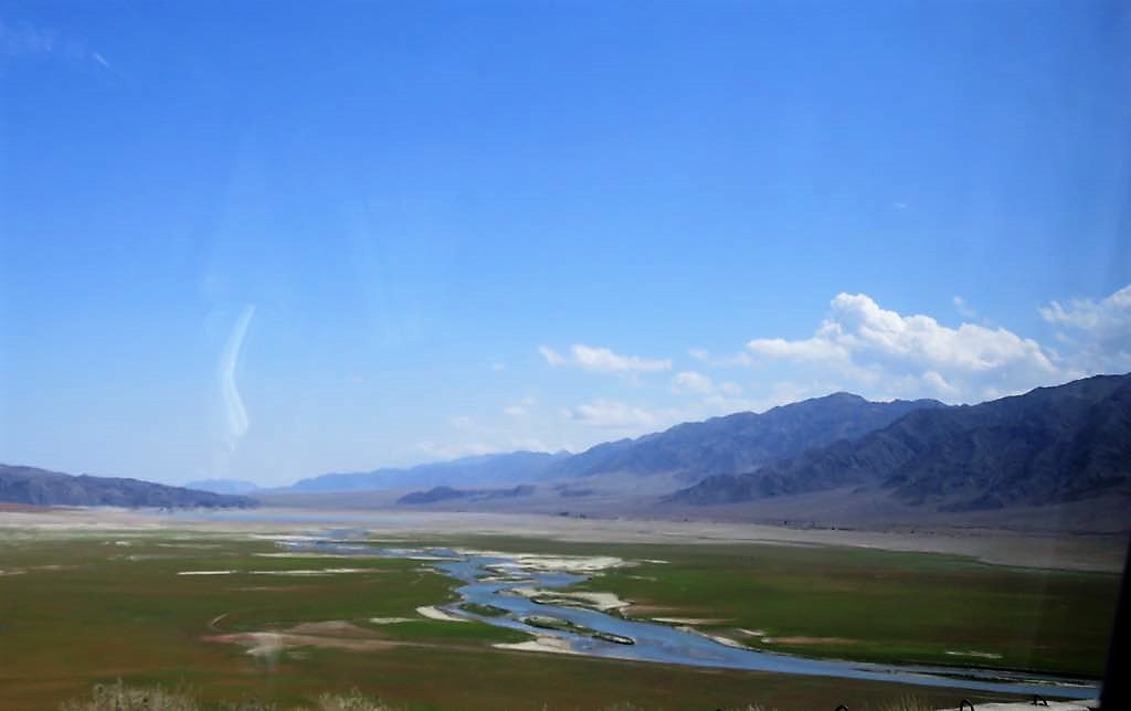 As we continued on our way we passed a field laid out for a game that is part of the World Nomad Games – a very important sporting event in the area. The game is called Kok boru (Grey Wolf in English) as the games origin was the need for the nomads to chase wolf packs (whilst on horseback) to keep them away from their livestock. The riders have to lift a running wolf from the ground and throw it to each other whilst the other team fight to get it from the riders! Today the game is played with a dead goat but it still shows the strength and horseman skills of the brave riders.