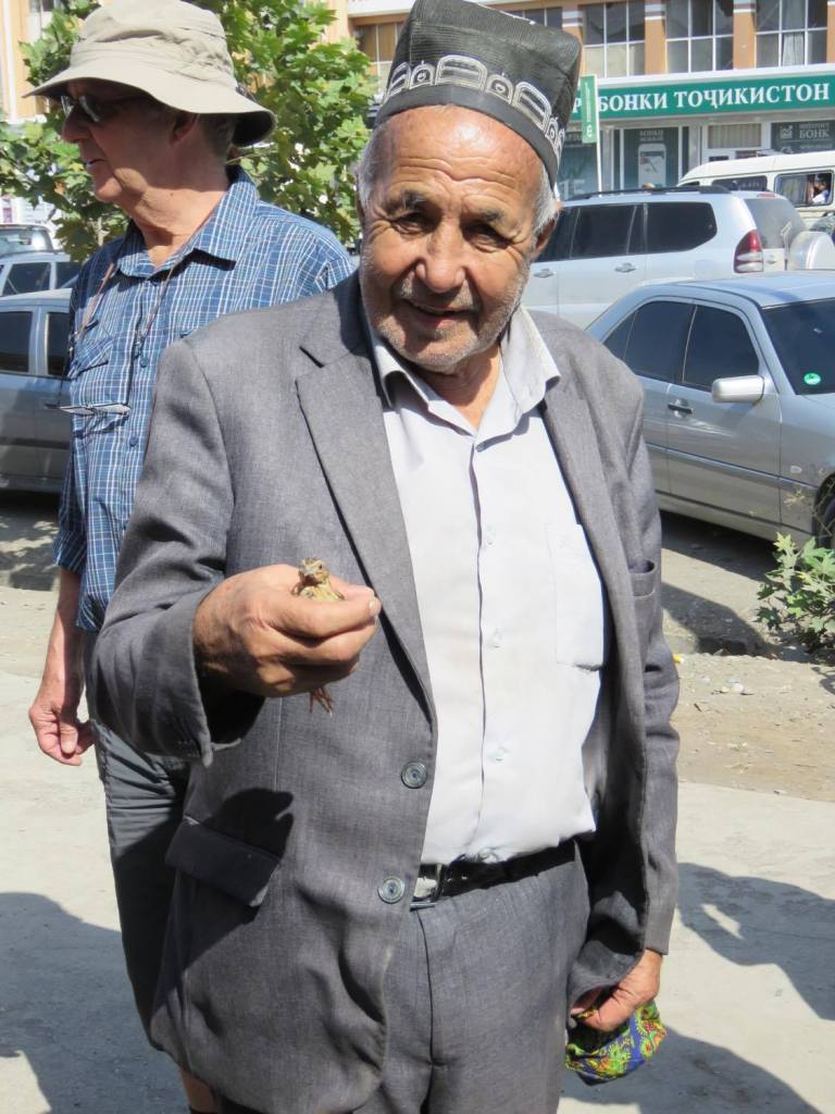 As is now common when we stop in small towns, people come up to us wanting to practice their English and it is a nice way to interact with them. On this stop we met an older gentleman, who, after a brief conversation, revealed a couple of cloth bags over this shoulder and under his arm … in these bags he had quails – fighting quails 🤔🤔. Apparently, there is a long tradition of quail fighting in the city but I had never heard of it!! Even Aijan, our guide from Kyrgyz had never seen such a thing.