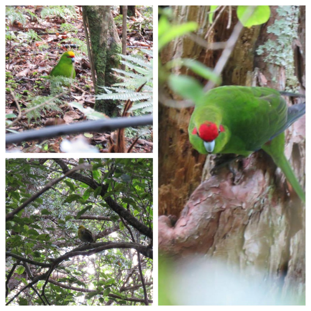 We saw Red crowned kakariki ❤️❤️ eating last summer’s berries off grown, Tuis feeding on tree fuchsia (the largest species of fuchsia in the world). We had a brief glimpse of a Yellow crowned kakariki and a Mohua (Yellow head) who apparently are often seen together (perhaps all the yellow headed birds stick together lol). And we spotted another juvenile saddleback which had its wattles and saddle just coming through.