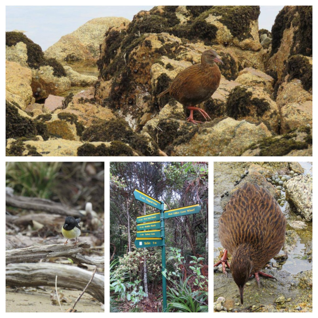 One of tracks took us out on to Boulder Beach, where we watched Weka feeding on crabs (sometimes with a little assistance by lifting rocks to expose the crabs). As typical with Wekas, they had little fear of us, and just carried on their own business.