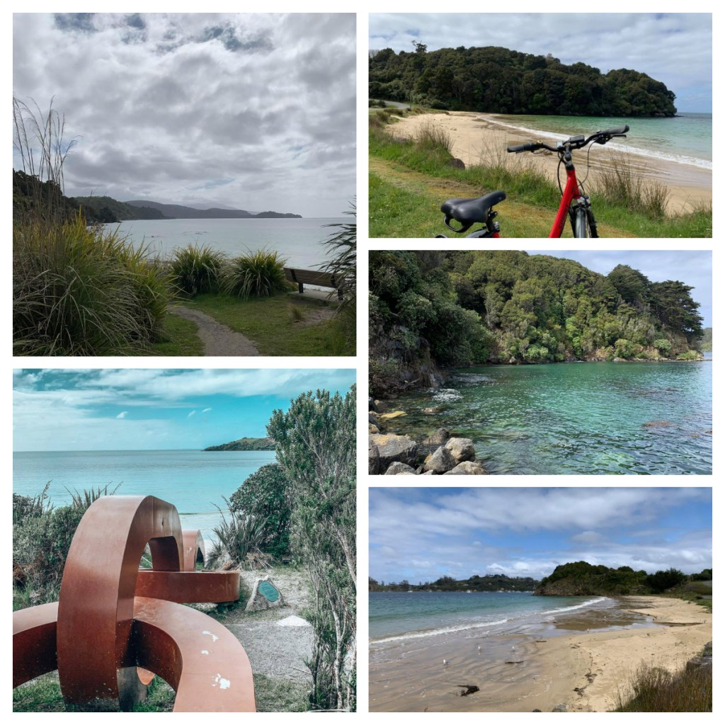 Back in Oban, we decided to hire a couple of e-bikes to explore a little further. First, we headed one way out of town and at the end of road we found ourselves in Lee Bay, the starting point for the Rakiura Track (one of New Zealand’s Great Walks). It is also the site of a huge chain that goes into the sea –Te Puka, the anchor stone. As the Maori legend of creation has it, Maui (now of Moana fame) used Rakiura as an anchor for the great ancestral canoe (Te Waka o Aoraki – the South Island). (FYI – the North Island is the fish he and his brothers caught.)