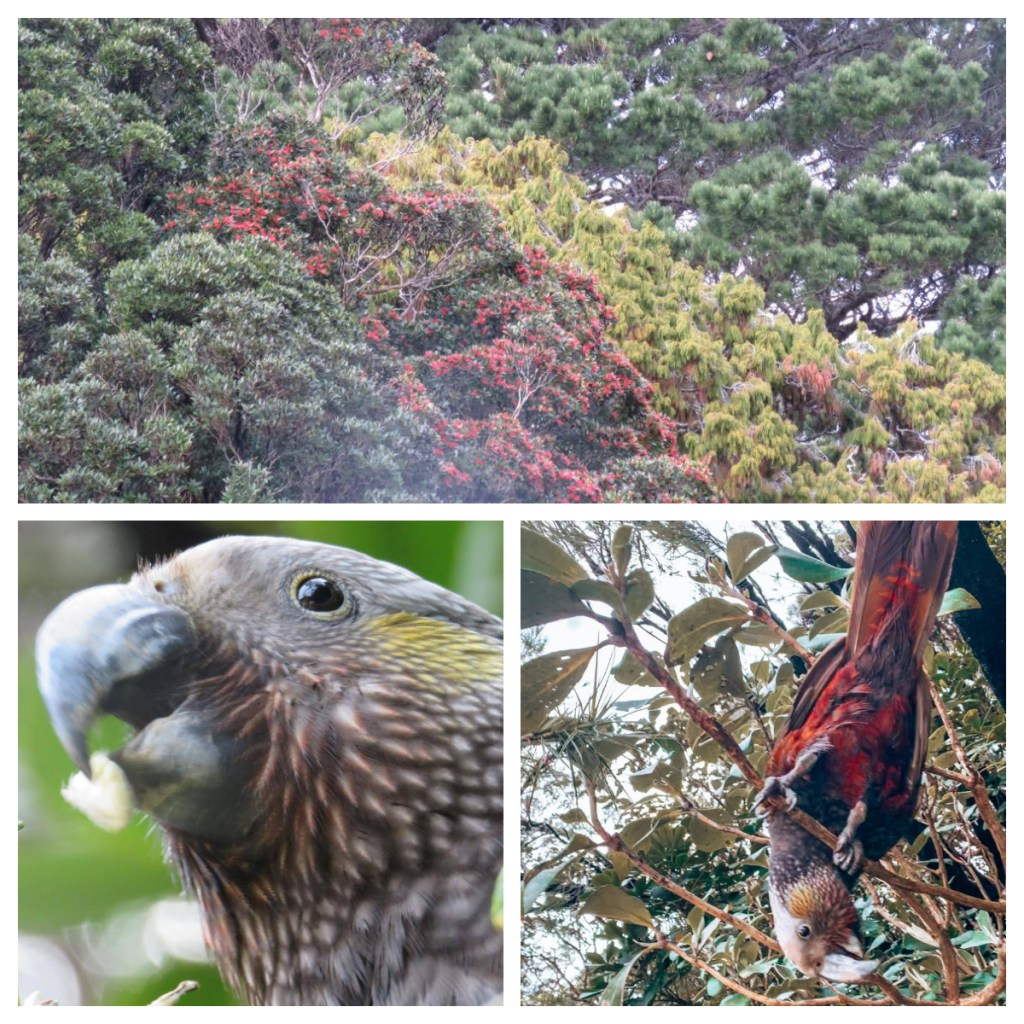 We were greeted by some very early blooming rata trees (apparently is a sign of a long, hot summer) and a very inquisitive Kaka who got so close I thought it was going to take my phone (which I was videoing it on) right out of my hands! According to Leah, the Stewart Island Kaka have their own dialect, distinct from those on the mainland – of course, I do not speak Kaka so cannot confirm or deny this but what I can say is they like to make their presence known!!