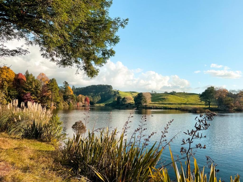 The final stop for the day was at McLaren Falls Park β 190 hectares of park land, just 10 minutesβ drive from Tauranga. We arrived just in time to grab a quick coffee (and the most amazing coconut cake) at the Falls CafΓ© before they closed and then had some time to walk some of the lovely tracks around the lake admiring the remaining autumn colours in the surrounding trees.
