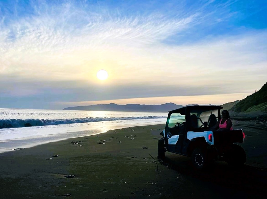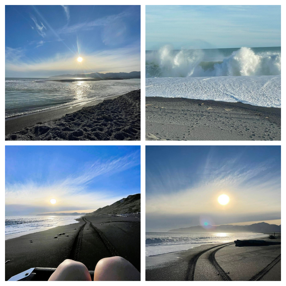 The other great thing about friends with friends with baches at Lake Ferry, is that they also have a beach buggy – not sure that is the correct for it, but it is basically a buggy to drive on the beach … so beach buggy it is. We had so much fun driving down the beach as the sun was setting – even when I had to take a turn sitting in the tray at the back. The beach of Palliser Bay is a wild with massive waves crashing down, with the sun going down it was beautiful.