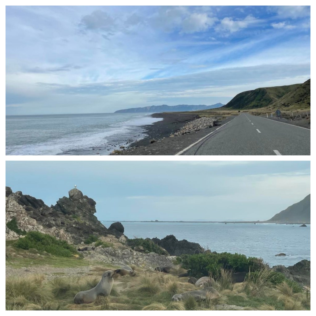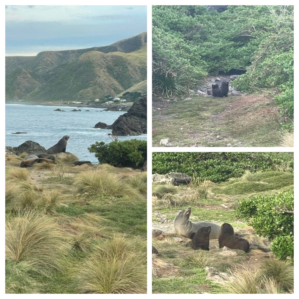 Once light, we could enjoy the drive back along the rugged coastline and our first stop was to see some seals we had seen from the road. What I did not realise at the time, but Cape Palliser is home to the North Island’s largest fur seal colony and despite being out of season (which is apparently November to January), there were so many pups. They were everywhere, hiding in and under the bushes and out in the open … some sleeping, some playing, some annoying their mums. Seals as far as the eye can see – they were so adorable