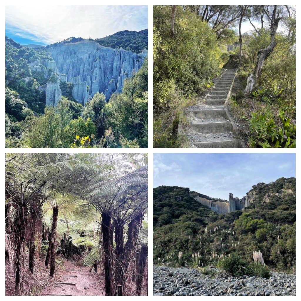 We continued back along the coast, through small fishing villages, past groups of surfers (is there a collective noun for surfers?) and stopped at the Pūtangirua Pinnacles Scenic Reserve where we followed the stream bed up towards the pinnacles. We then headed up the canyon side to the look out over the ‘pinnacles’. These are apparently one of New Zealand’s best examples of ‘badlands erosion’. I won’t bore you with the detail of the geological history of the formation of the pinnacles as it is about 8 millions years long, but it is probably important to know that it was a location for some of the Lord of the Rings movies lol!