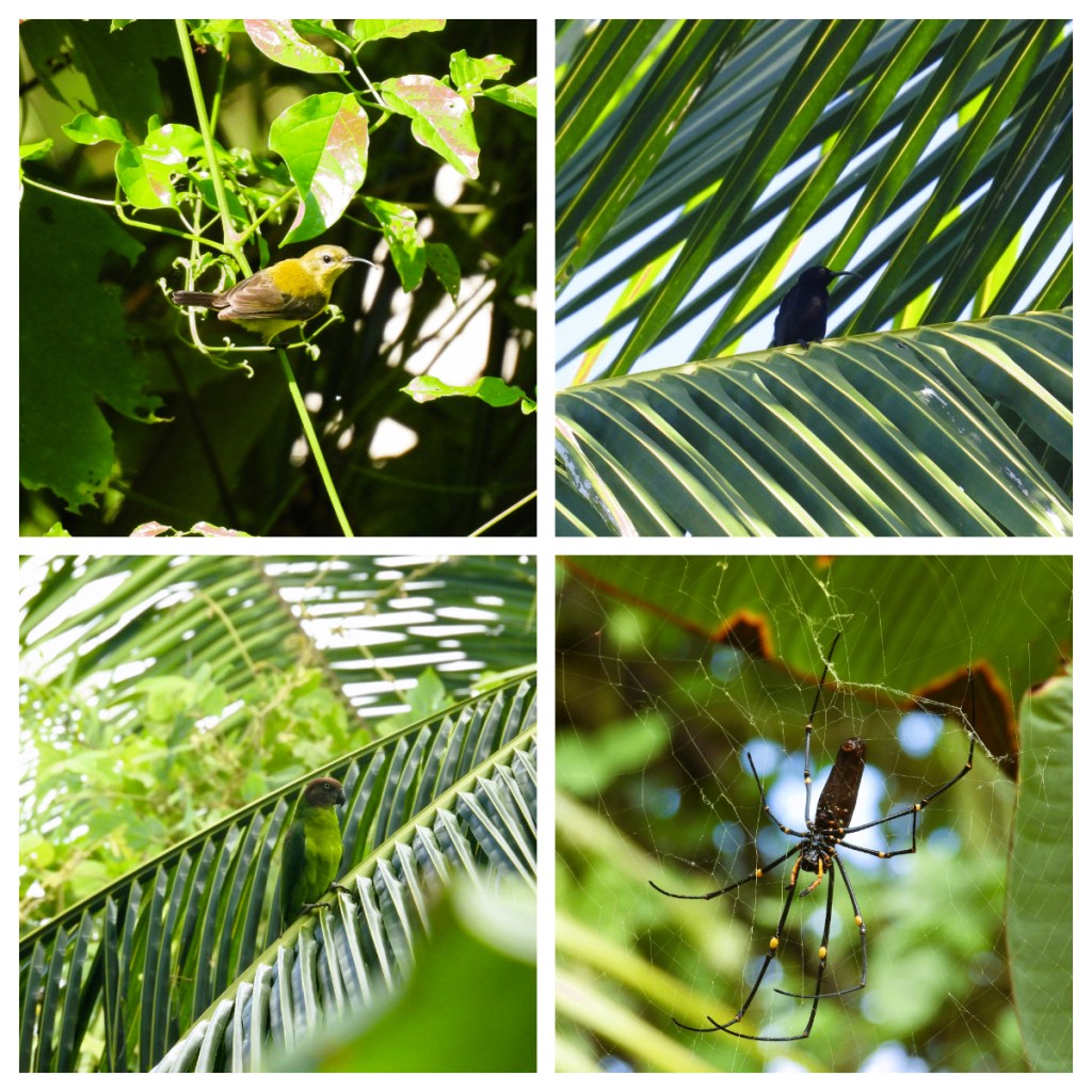 We spotted Red cheeked parrots, black eagles, sunbirds, red lorikeets along with some very cool spiders and insects (describing them as cool is a matter of opinion I guess lol). It was an easy walk but so very hot (it had already been 31C at 8am!).