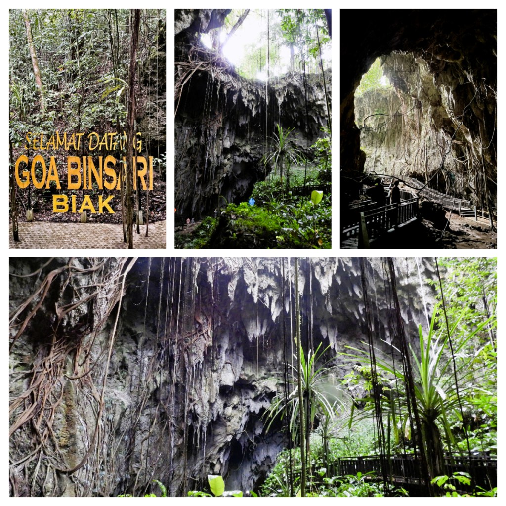 We were here to visit the Binsari Caves (also known as Japanese Cave). For the local Biak people, the caves are a place to get in touch with their ancestors, but during the Battle of Biak it became a battleground and was used as a hideout, by the Japanese army, housing up to 5,000 soldiers at one time. On June 7, 1944 the Allied Forces dropped bombs and fuel drums on the caves, killing at least 3,000 Japanese soldiers who had taken refuge in the caves rather than surrender. Those who were not killed outright were buried alive.