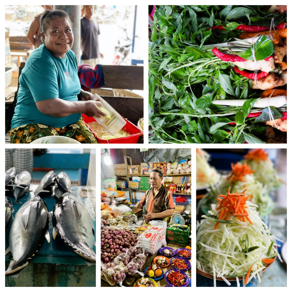 Back in the ‘city’ we stopped at a local market – it was clean and tidy and all the products (mainly fruit, vegetables and fresh fish) were beautifully arranged in geometrical patterns. Surprisingly, even the fish part of the market did not smell bad – I guess the fish were just that fresh. It was nothing like the market we visited back on Flores which was completely chaotic! We had time to wander around the stalls and chat to a few of the vendors who were all happy to entertain our photo requests.
