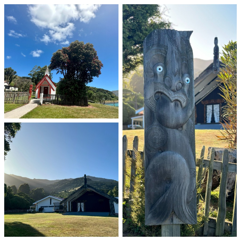 On the way, I stopped to admire a small Māori settlement of Ōnuku, consisting of a few houses, a beautiful small church and beautifully carved Whare Tīpuna (ancestral house). These are reminders of what was once a thriving Māori community. The church was built in 1878 and was a plain timber building and one of the first non-denominational church in the country. It was refurbished and extended with the traditional carved porch in the 1940s as part of the Akaroa centenary and as a memorial to the early Māori of the area. This was also one of the sites of the signing of the Treaty of Waitangi.