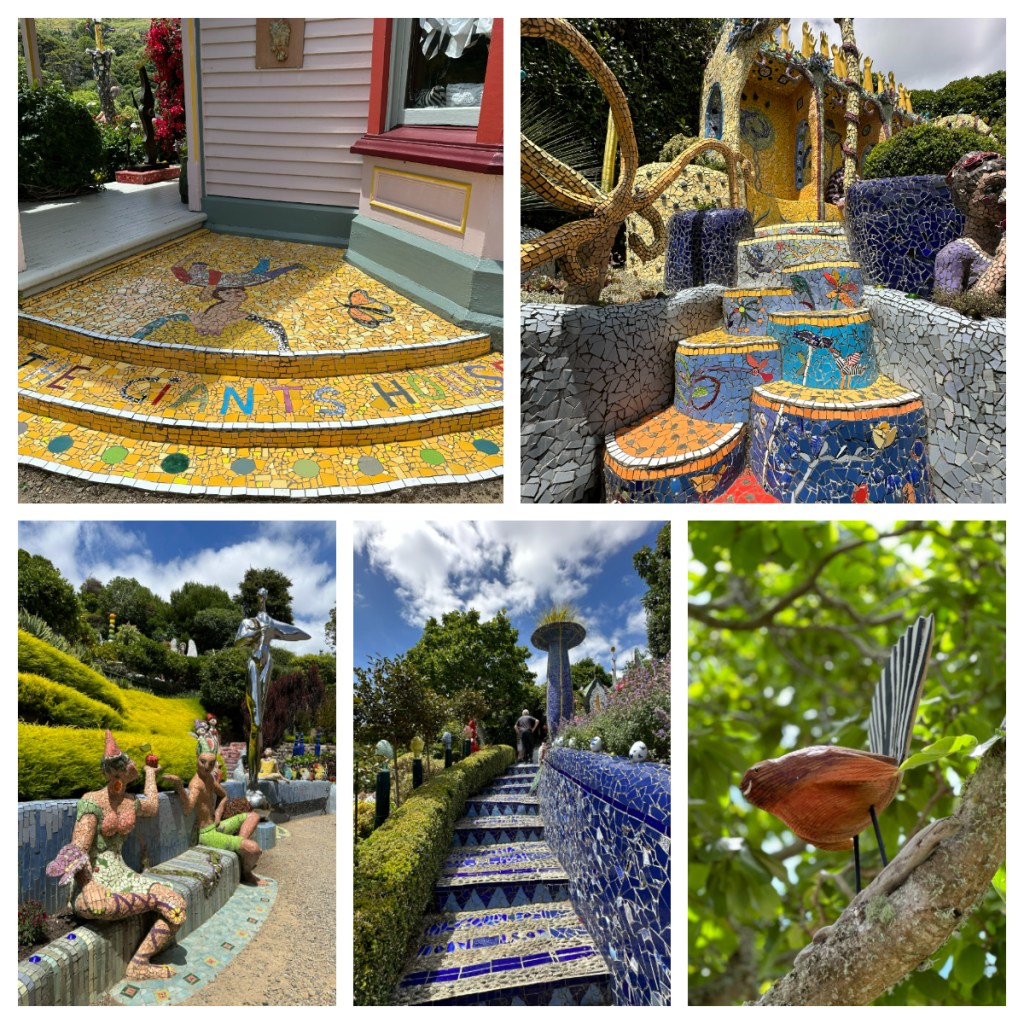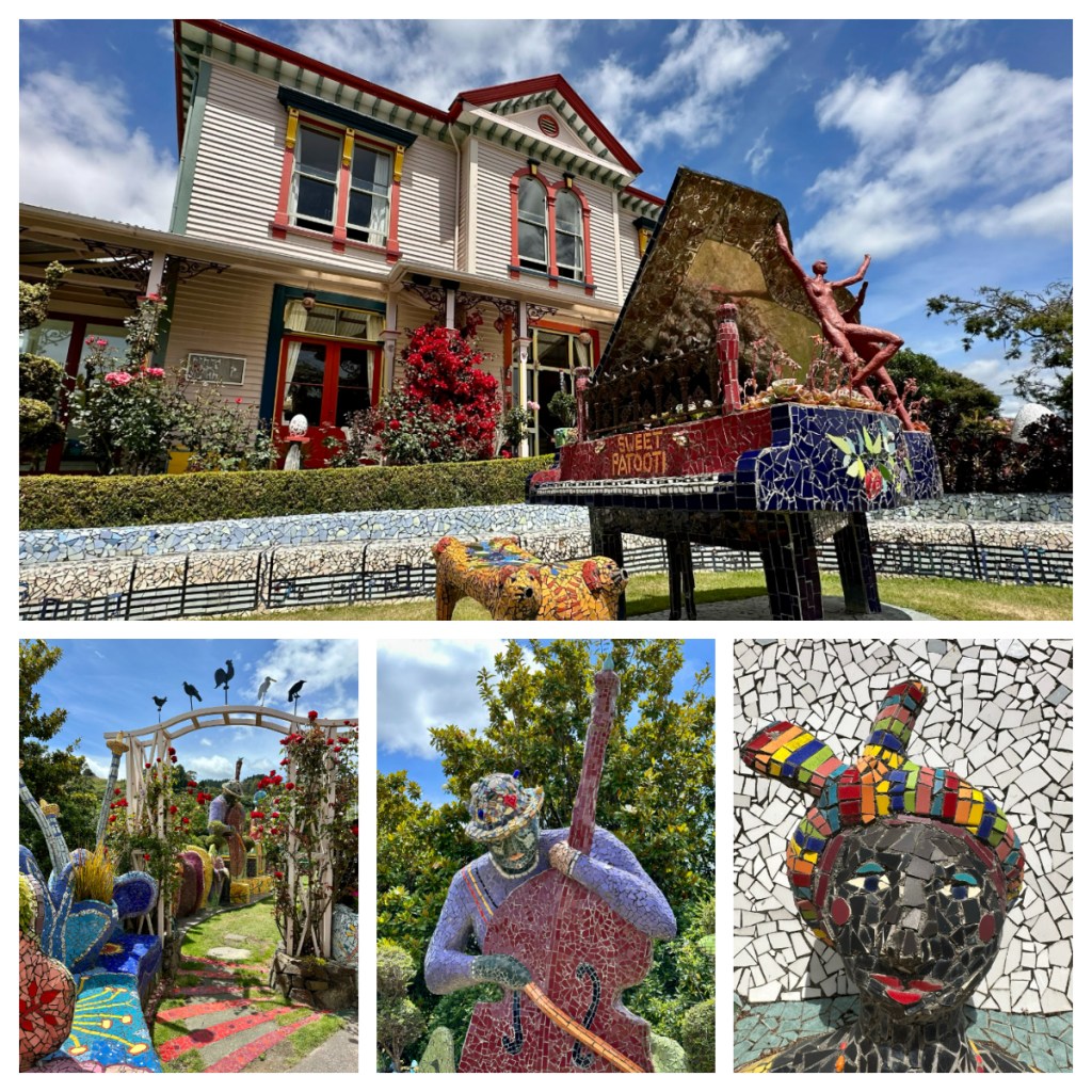 I have been to Akaroa many times, but I had never visited one of the “must dos” – The Giant’s House. It was a bit of a walk up the hill, in what was now a hot day, to this very unique attraction. The Giant’s House itself was built around 1880, but the main attraction is the garden, apparently a “garden of international significance” and its original sculptures and mosaics that fill the garden and its multitude of terraces. Often described as a wonderland, it is the colourful and quirky creation of local artist Josie Martin.