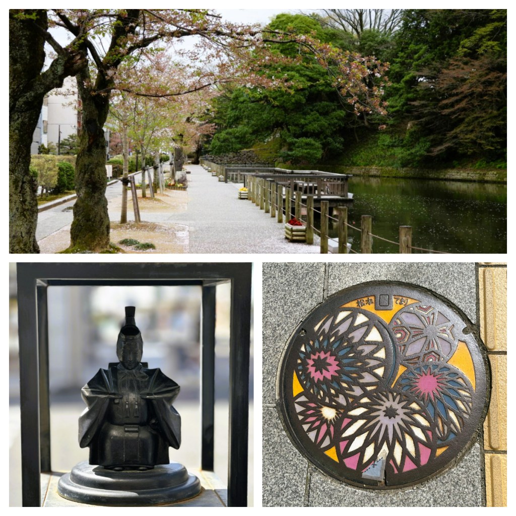 The walk to the castle took us through part of the very walkable city, past a couple of sites I planned to head back to, and I enjoyed noting the nice little local touches such as the Samurai lamps on the street and the beautiful manhole covers with local handicrafts on them. (Manhole covers became a bit of a theme of the trip with each city/region having their own local design. I will need to make a collage to show them all!)