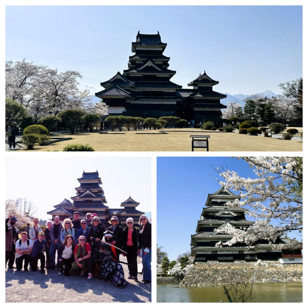 By 8am we were out the door of the hotel and on the walk passed the local temple (for the last time) to Asakusa station to catch the subway and then a train before boarding our Japan Rail train to Matsumoto – easy to find with the markings on the floor! For many Japan Rail trains, you need to reserve a seat in advance, so we soon settled into our seats and I set up to do some Japanese research … by watching the “Age of Samurai” on Netflix.👍🏻 (FYI it was actually really interesting and gave me some good background to things we were to see in the coming days.)