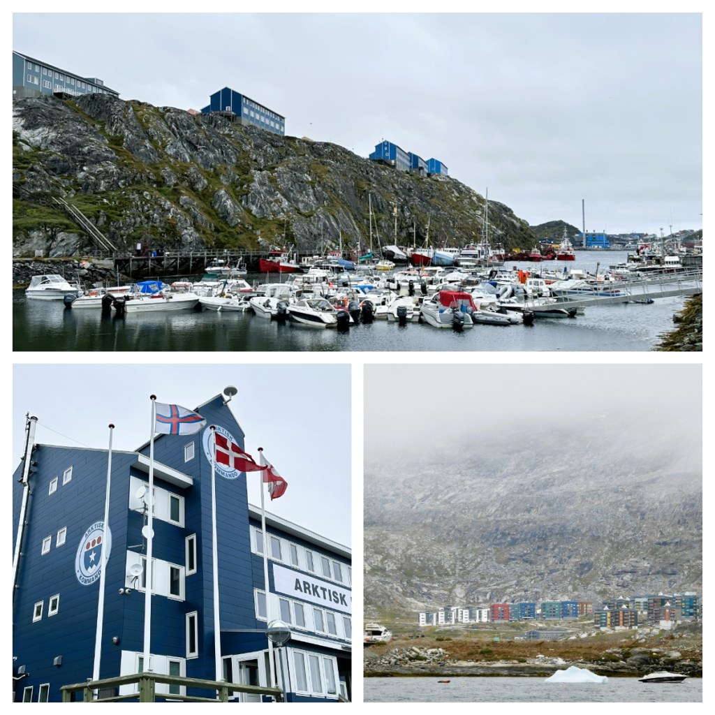 As we pulled in to the harbour of the small town I saw what I thought was hills/mountains in the background. It was in fact icebergs, floating on the other side of the land 🤯. So cool.