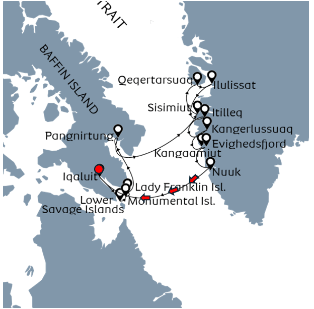The next day saw us arrive offshore of Illulissat, 250km north of the Artic Circle, population around 4,500 and known as the Iceberg Capital of the World. In fact Illulissat is the Kalaallisut word for Icebergs! The Illulissat Icefjord is the source of most icebergs in the North Atlantic and the most likely source of the iceberg that sunk the Titanic!