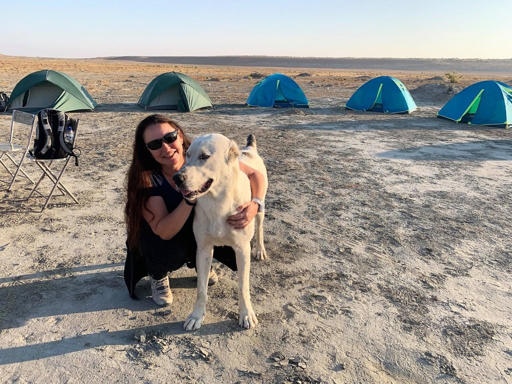 After a night’s sleep in a tent near the Darvaza Gas Crater, I got up early to watch the sunrise, with the company of the lovely Alabai dog who had just come off his nightshift lol. (I forgot to mention that an Alabai was the mascot of the Asian Games held in Ashgabat in 2017!).
