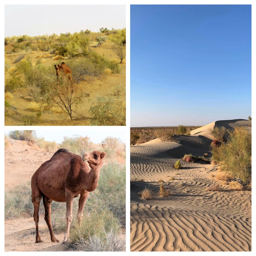 This stretch of the road continued through the Karakum desert (80% of the country is desert) with many more camels along the road – and a road sign warning of them (I am loving this ❤️❤️❤️). Most of the camels we are seeing are dromedary (one humped camel) despite them being native to Arabia. The original camels of the region were Bactrian (double humped) but as Arabs moved into the region, following the Silk Road over 4,000 years they brought with them their camels. The camels bred with the native Bactrian camels and their dominate genes meant the resulting offspring were predominately single humped, almost wiping out the local Bactrian population.