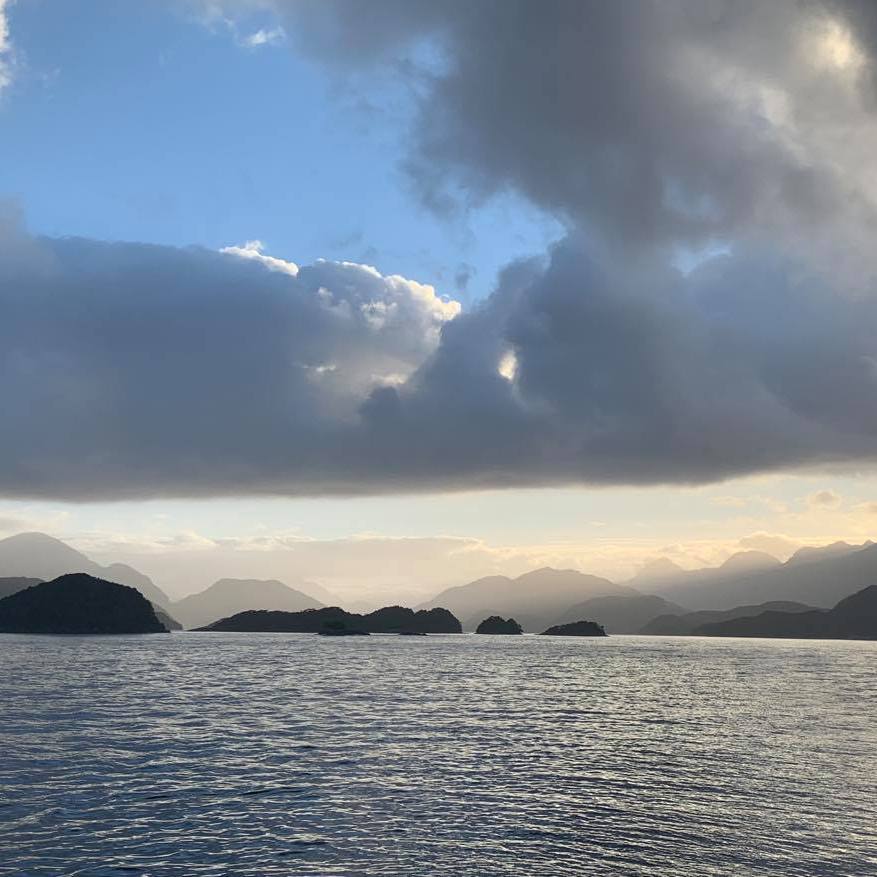 After dinner I headed back on deck as it was a stunning evening to leave Doubtful Sound and head back out to the ocean as the sun set – but I did have to make sure I was back in my bed before we got out past the headlands and it got rough again 🥴