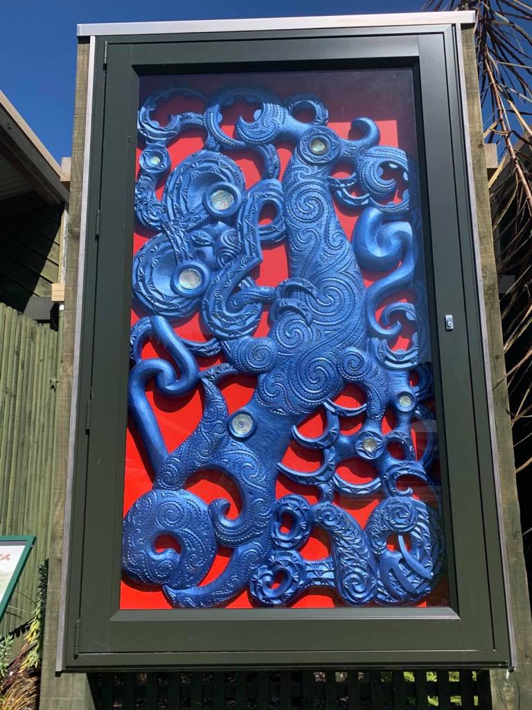 We stopped by the Department of Conservation (DoC) office to check out the local walking tracks and I was drawn to the beautiful carving they have outside. It tells the tale of Kewa, a great whale who chewed through the South Island, separating Stewart Island/Rakiura and creating Te Ara a Kewa or the pathway of Kewa, also known as Foveaux Strait.