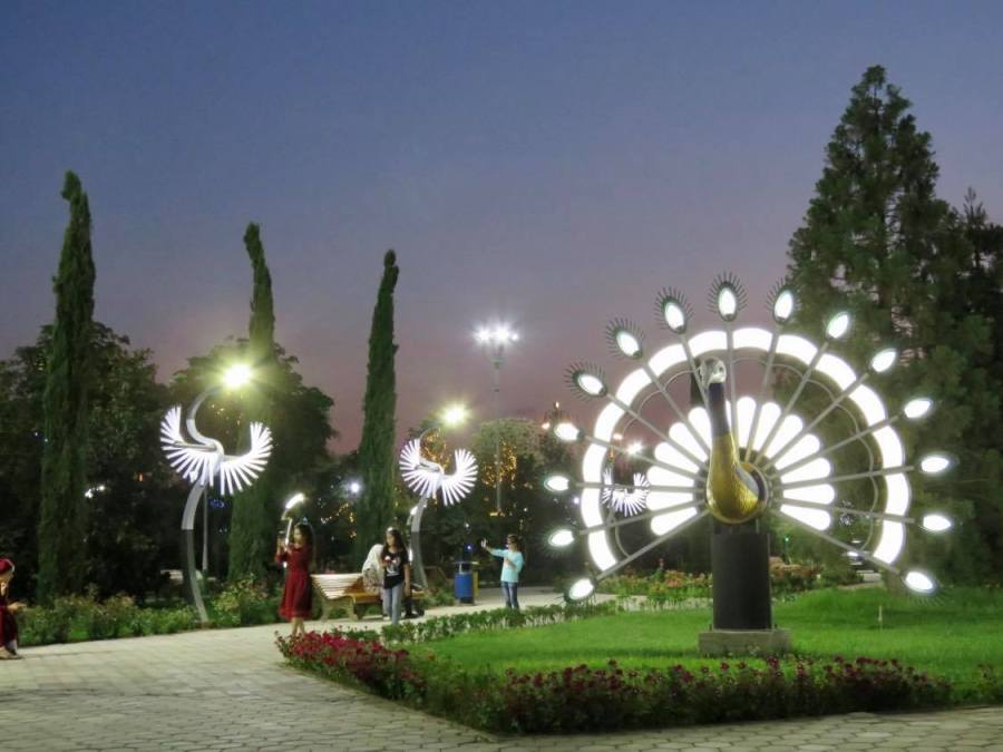 We also took the opportunity to take the funicular which runs almost a kilometre across the river (back to Somoni Park) where the fountains were now working before wandering through one of the other beautiful parks (which contained some of the original, not restored city walls) filled with a carcophony of myna birds coming in to roost for the evening.